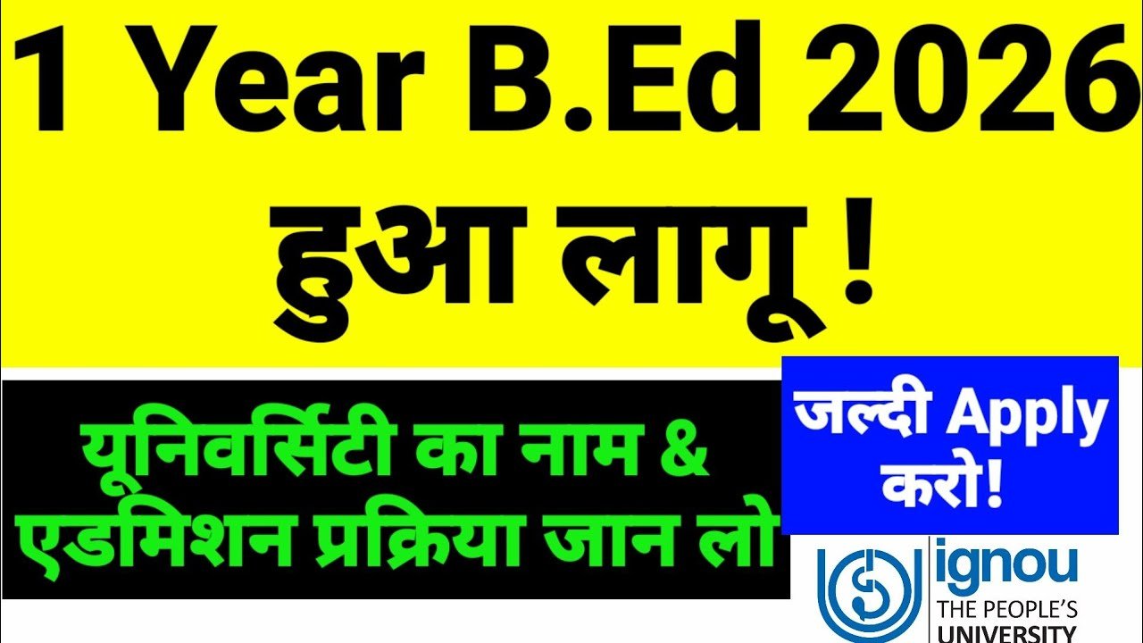 अगर आप कम समय में टीचर बनना चाहते हैं, तो 1 Year BEd Course 2026 आपके लिए गेम-चेंजर साबित हो सकता है। सही समय पर अपडेट्स पर नजर रखें और जैसे ही नोटिफिकेशन आए, तुरंत आवेदन करें।